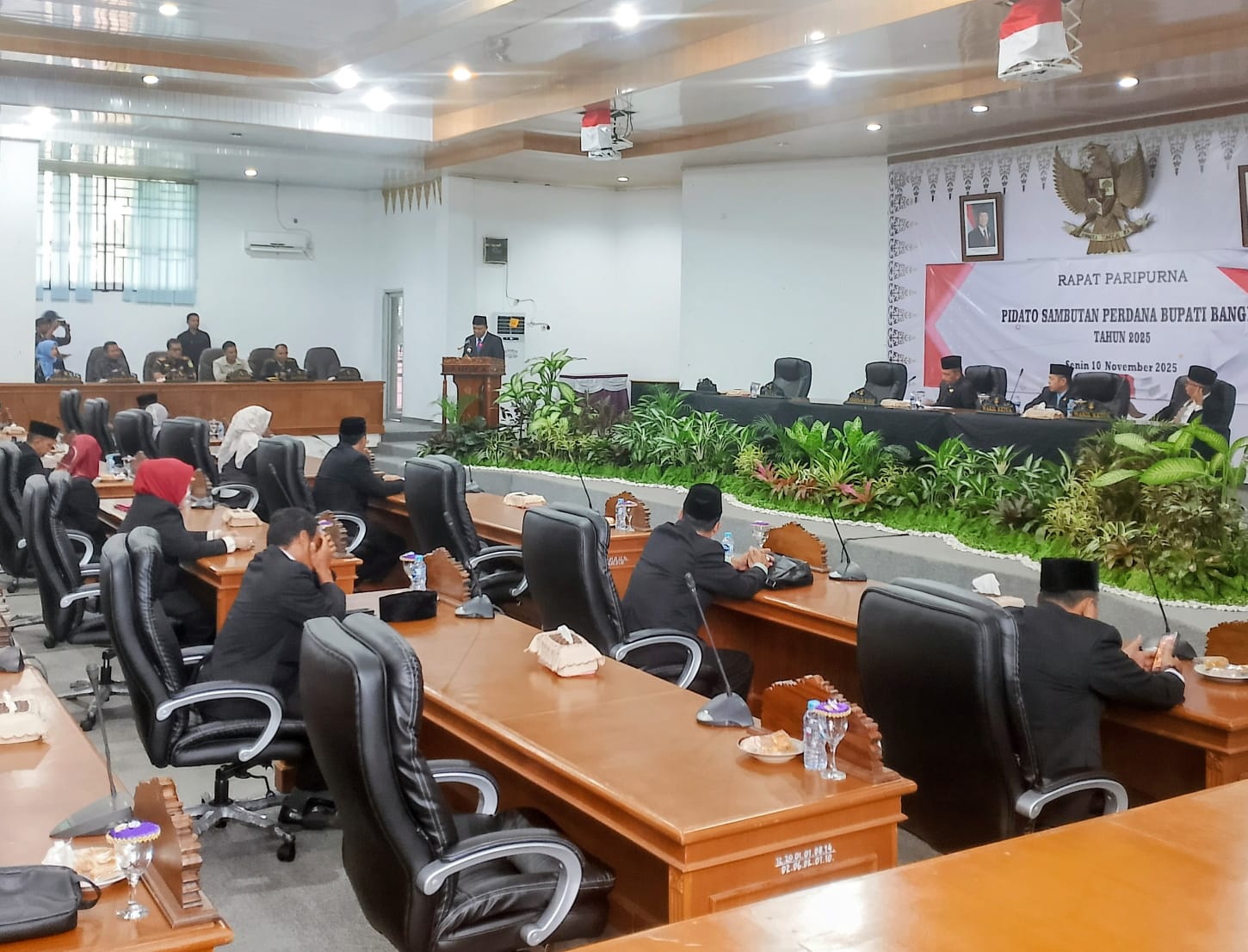 Sungailiat | JejakKriminal.com – DPRD Kabupaten Bangka Senin (10/11/2025), menggelar Rapat Paripurna Pidato Sambutan Perdana Bangka tahun 2025 rapat dipimpin langsung oleh Ketua DPRD Kabupaten Bangka Jumadi,S.IP dan dihadiri Bupati Bangka Fery Insani, S.E., M.M, wakil Bupati Bangka Syahbudin, S.IP., M.Trip, wakil ketua I DPRD Hendra Yunus,SE wakil ketua II DPRD M.Taufik Koriyanto,SH,MH dan segenap FORKOPIMDA , Plt Sekretaris Daerah, Asisten, Kepala Dinas,kantor, Camat, Lurah, Darma Wanita, Insan Pers serta para undangan lainnya.