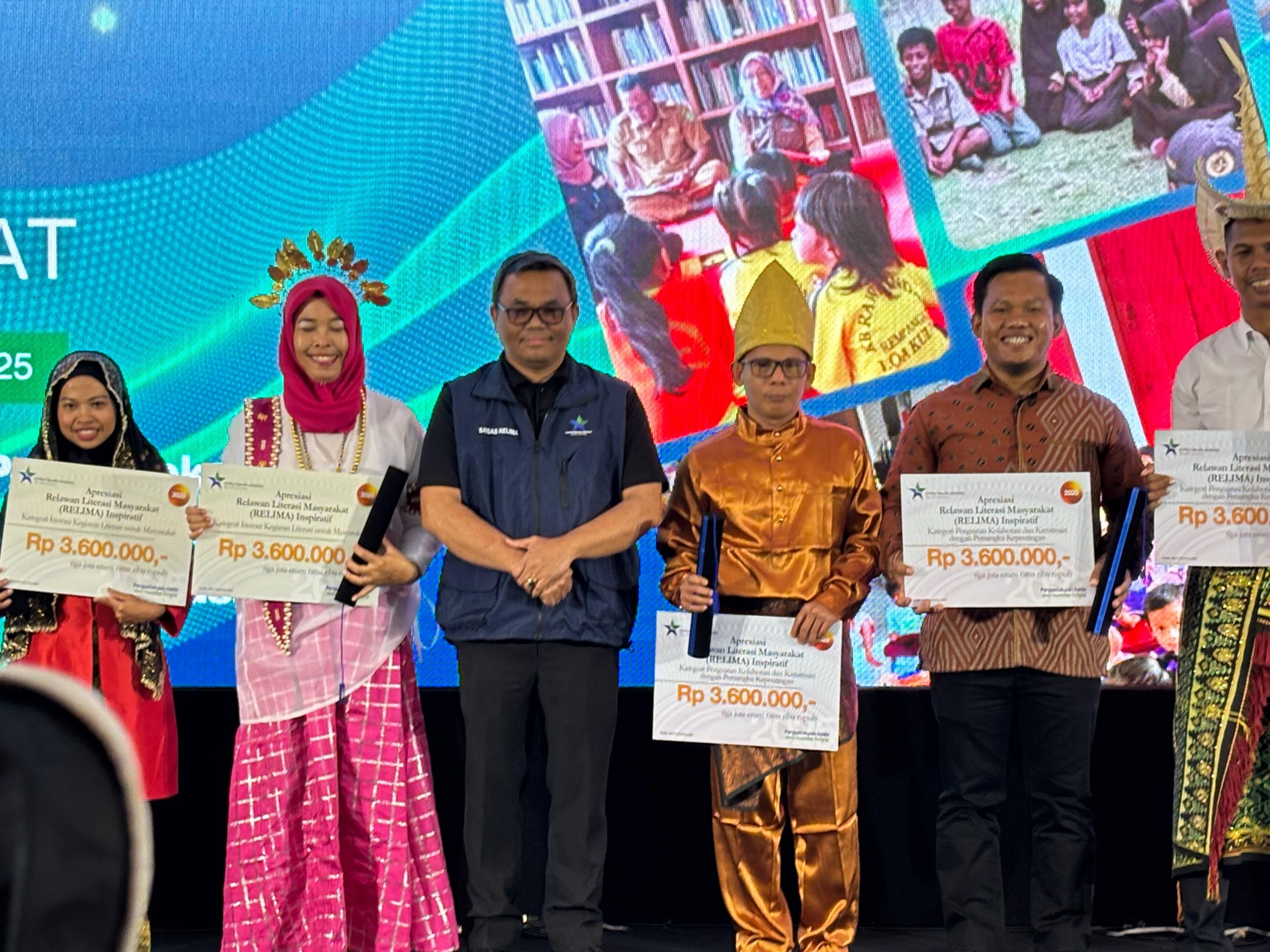 Penghargaan kepada Relima Pegiat Literasi Inspiratif ini langsung diserahkan Deputi Bidang Pengembangan Sumber Daya Perpustakaan Dr. Adin Bondar, S.Sos., M.Si, Rabu (12/11/2025) malam di The Highland Park Resort Bogor.