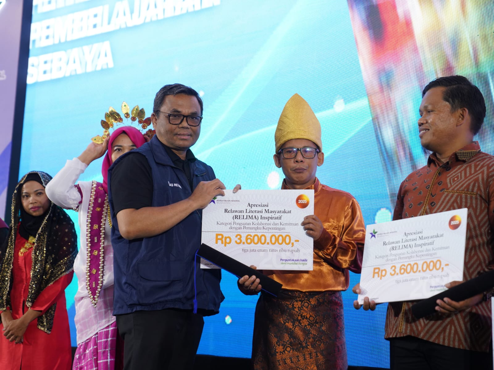 Penghargaan kepada Relima Pegiat Literasi Inspiratif ini langsung diserahkan Deputi Bidang Pengembangan Sumber Daya Perpustakaan Dr. Adin Bondar, S.Sos., M.Si, Rabu (12/11/2025) malam di The Highland Park Resort Bogor.