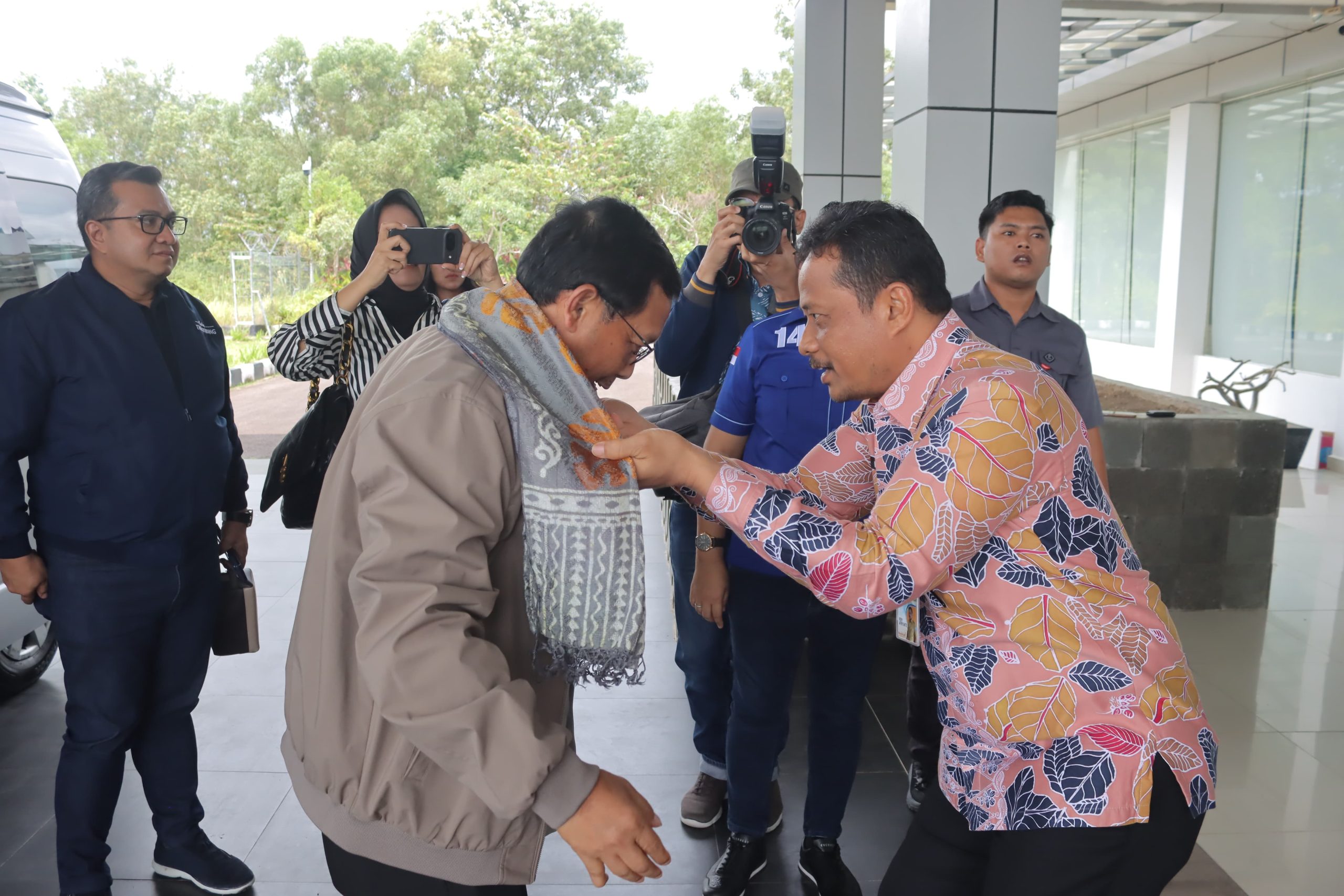 “Selamat datang Pak, di Bangka Belitung,” sambut Pj Sekda Fery Afriyanto sambil mengalungkan kain syal Cual khas Bangka Belitung.