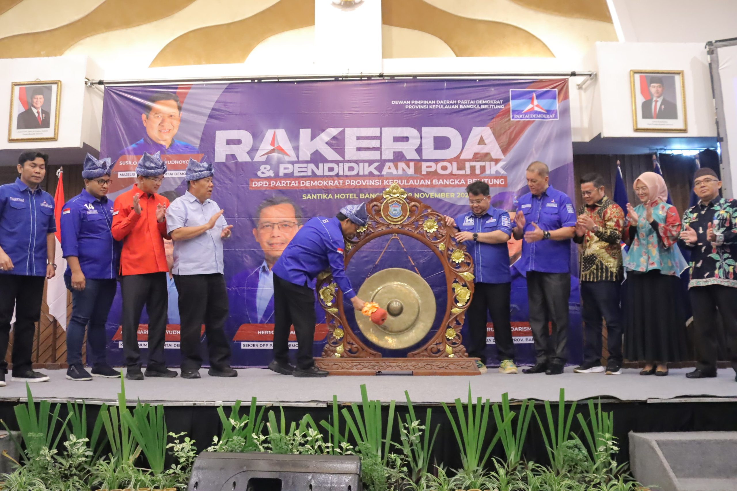 PANGKALPINANG| Jejakkriminal.com – Sebagai bentuk dukungan Pemerintah Provinsi Kepulauan Bangka Belitung (Pemprov Babel) terhadap aktivitas kelembagaan partai politik, Gubernur Babel Hidayat Arsani menghadiri Rapat Kerja Daerah (Rakerda) dan Pendidikan Politik Partai Demokrat di Ballroom Hotel Santika, Jumat (28/11/2025).