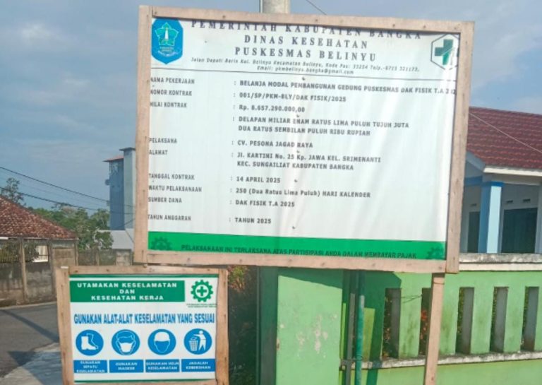 Bangka| Jejakkriminal.com – Pembangunan proyek Puskesmas Belinyu di Kecamatan Belinyu, Kabupaten Bangka, tak tuntas sesuai jadwal. Proyek yang mestinya rampung akhir tahun ini justru molor dan masih dalam tahap pengerjaan.