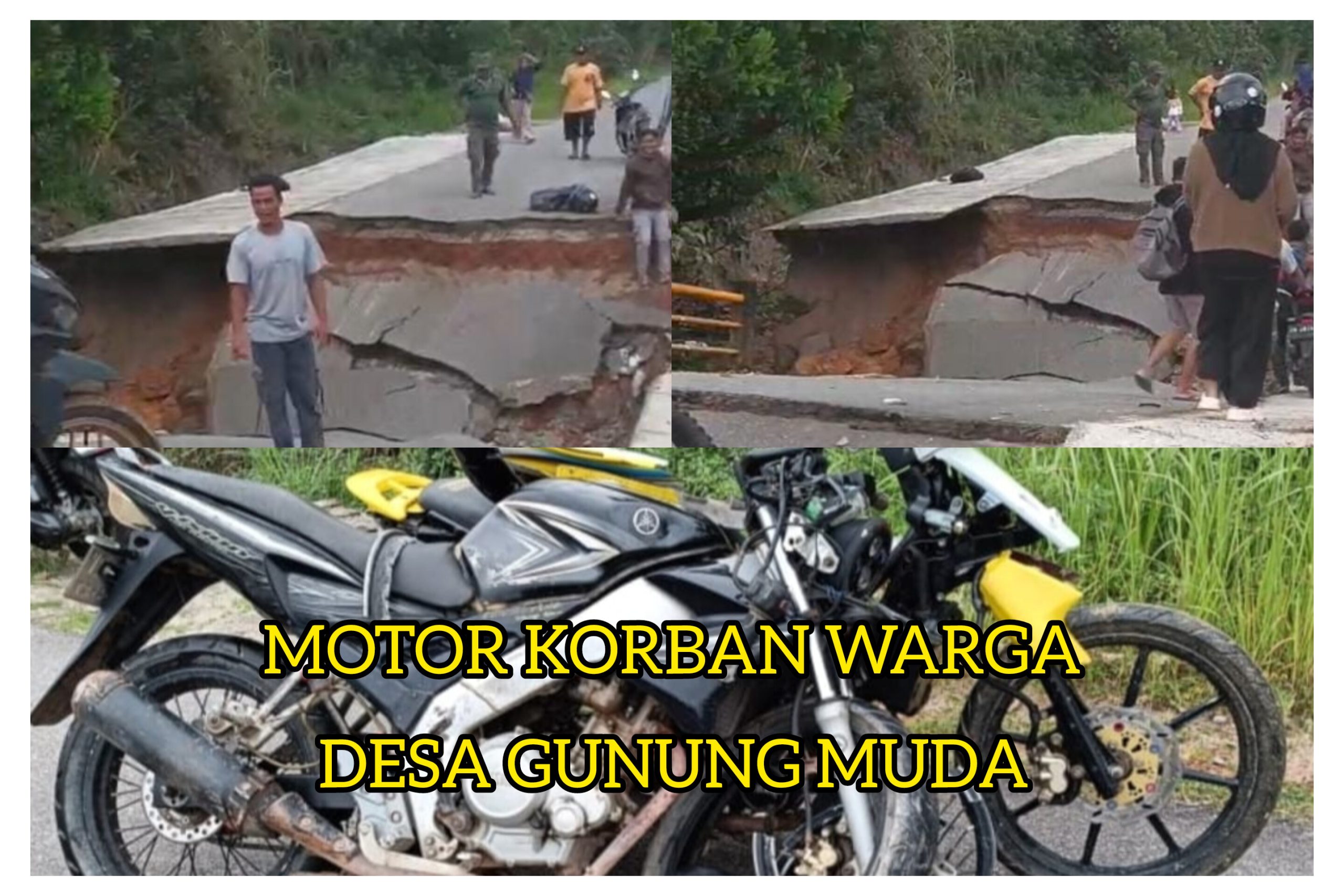 Dan atas kejadian ini warga Desa Gunung muda sebanyak dua orang jadi korban saat pulang kerja lintas jembatan itu.Kondisi dau korban masuk reruntuhan jembatan tersebut.